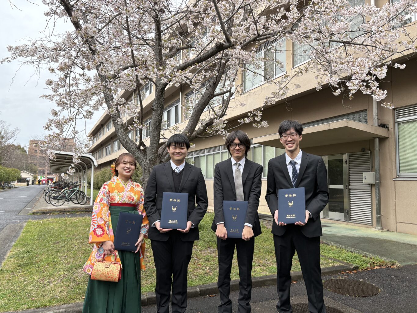 We are pleased to announce that Higuchi has completed the master’s program, and Fukushima, Ueyama, and Hattori have graduated from the undergraduate program in our laboratory. Higuchi will be joining a company, while Hattori will go on to graduate studies at another university. Fukushima and Ueyama will continue on to graduate school at Okayama University and remain in our laboratory to pursue their research. We sincerely commend all of them for their hard work and achievements, and we look forward to their continued success in the future. Congratulations to everyone.