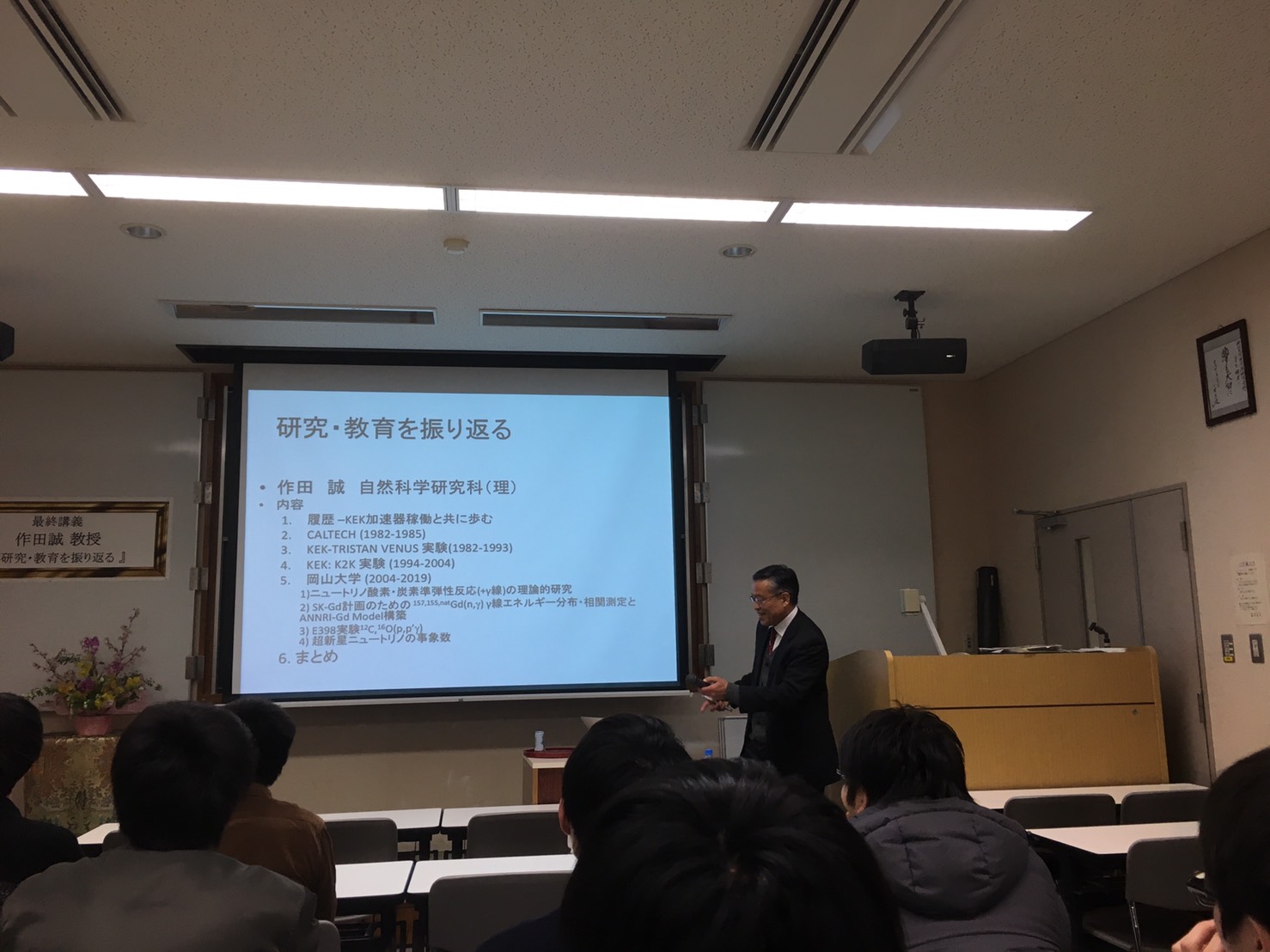 3月1日、作田誠教授の長年にわたる功績に敬意を表し、退官を記念して最終講義が開催されました。これまで先生が取り組まれた研究、教育を振り返りその軌跡をたどりながらご講話くださりました。ありがとうございました。