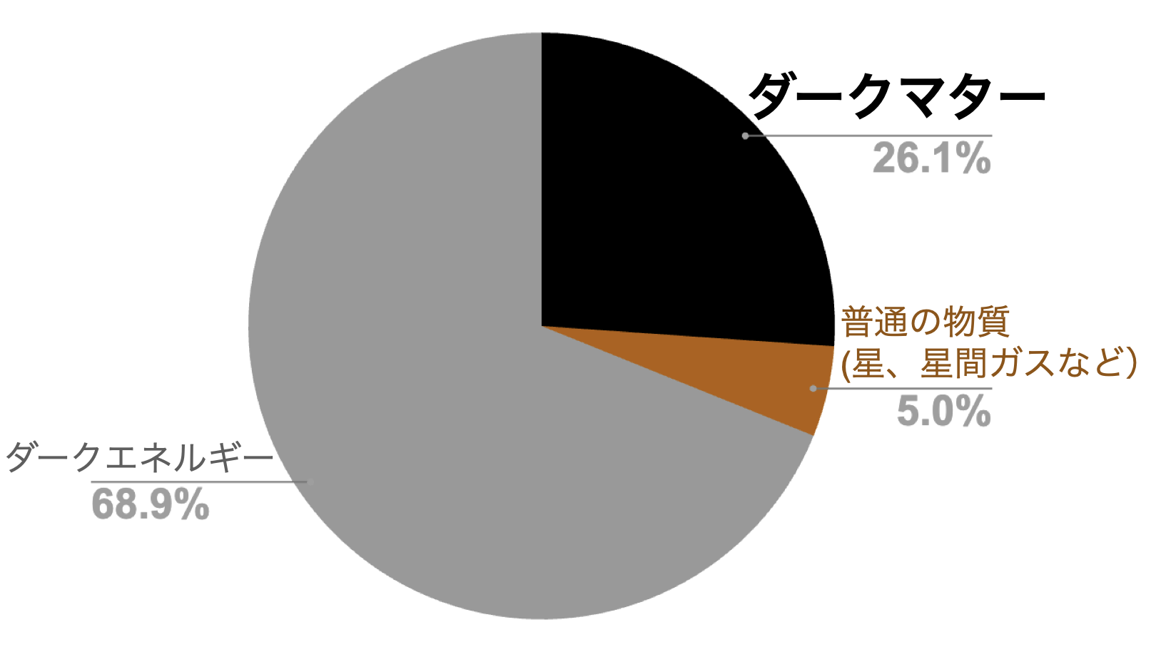 わたしたちが知っている星やガスは、実は宇宙全体のたった5%に過ぎません。全体の約4分の1を占め、宇宙に満ちているのが、この「ダークマター」です。