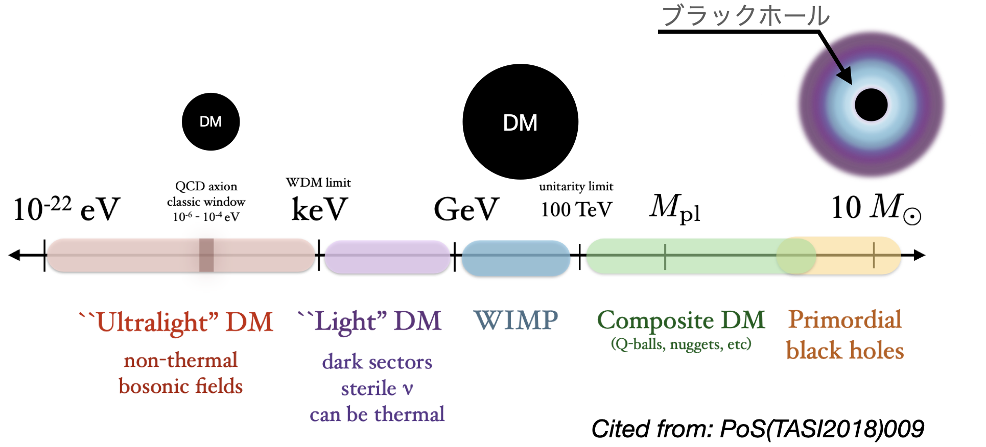ダークマターと一口に言っても、その正体となる候補は非常に多様であり、その「重さ(質量)」の幅はとてつもなく広いです。