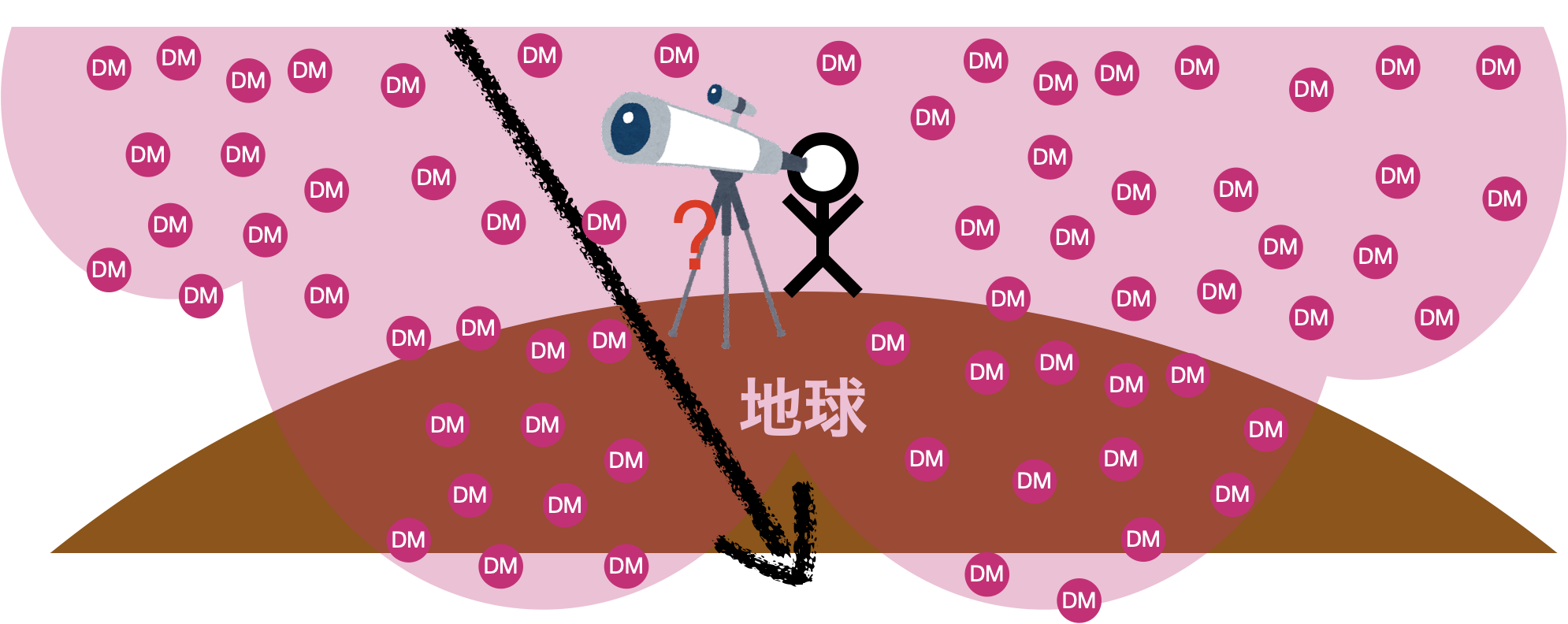 実際、ダークマターは銀河の周りに、目に見える物質よりもはるかに高密度に集まって存在していることがわかっています。もちろん、わたしたちや地球が属する天の川銀河にも、大量のダークマターが存在し、今この瞬間も地球を素通りしていると考えられています。