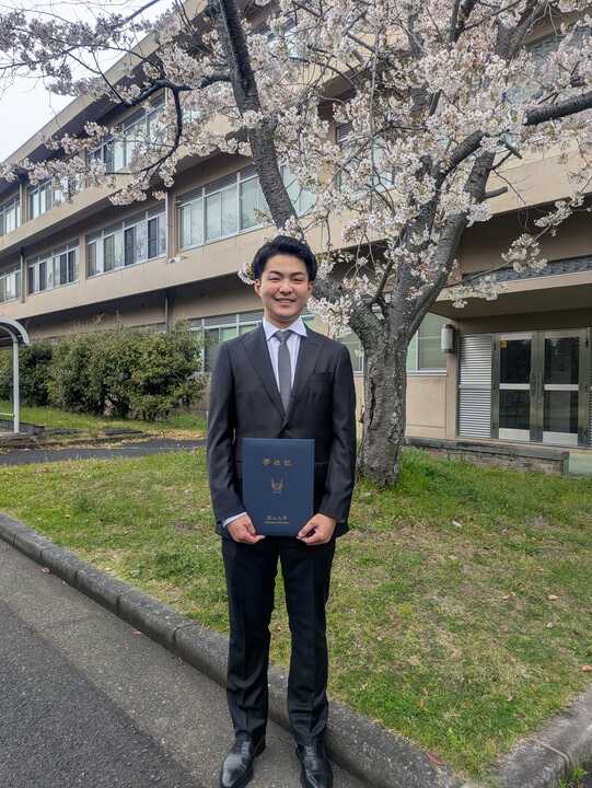 Graduation ceremony was held. Ms. Matsuda completed her master’s program. Mr. Yoshimori and Ms. ZHANG graduated. Congratulations to all of you! Mr. Yoshimori March 25, 2026