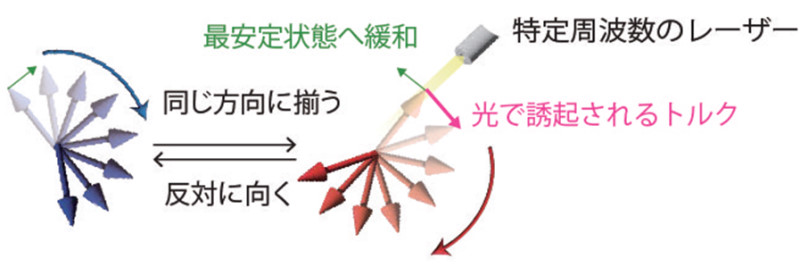 ホーム > ニュース > 光照射により「追いかけっこ」して回り続けるスピン-光で電子間の作用反作用の法則を破る-